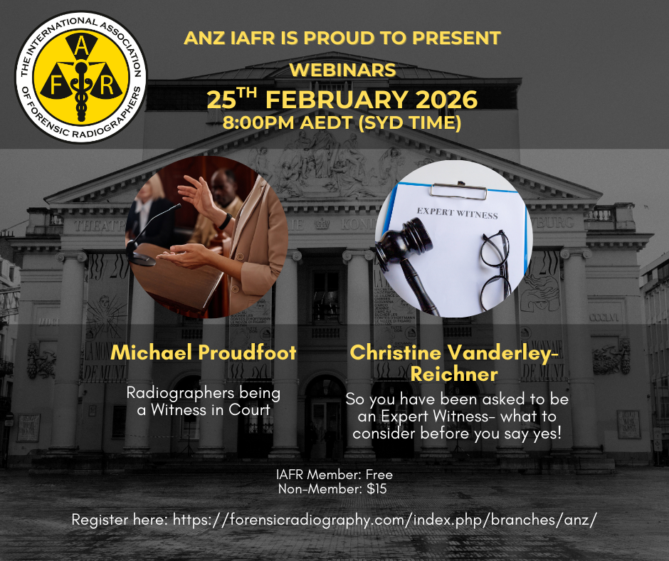 ANZ Branch Feb Webinar: Forensic Radiographers – Giving Evidence in Court Read More »